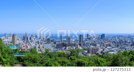 初夏の神戸の都市風景 パノラマ (兵庫県神戸市中央区)