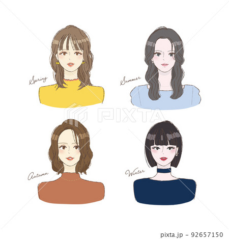 パーソナルカラー診断の女性セットイラスト素材