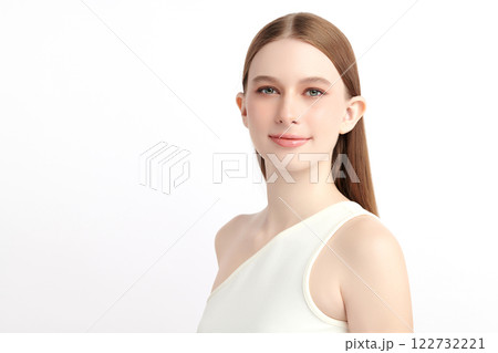 Beautiful young woman with clean fresh skin on white background, Face care, Facial treatment, Cosmetology, beauty and spa, women portrait.