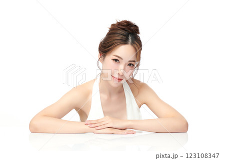 Beautiful young asian woman with clean fresh skin on white background, Face care, Facial treatment, Cosmetology, beauty and spa, Asian women portrait.