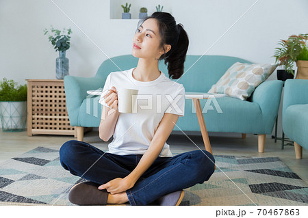 亞洲台灣中國人 運動 女性 黃種人 黃皮膚 窗簾 運動健身體適能 手機 物聯網