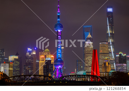 Night view of skyscraper and skyline in Lujiazui, Shanghai, Skyline and skyscraper buildings in Shanghai, Shanghai city skyline skyscraper architecture, China.