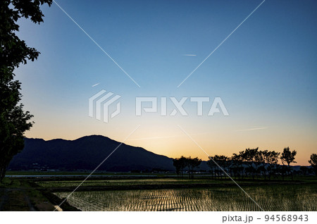 新潟 日没後の水田