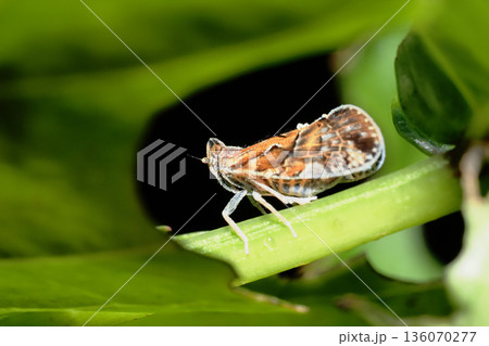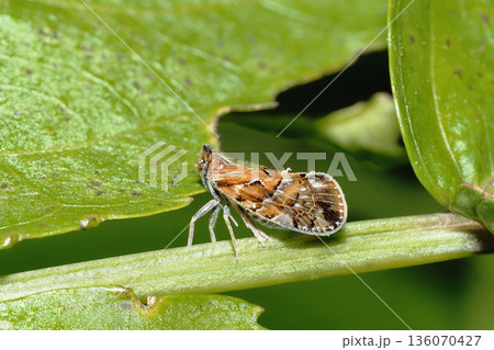 生き物 昆虫 ヤナギカワウンカ、成虫幼虫ともヤナギ類の汁を吸うウンカ。複雑な模様をしています