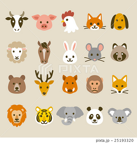 シンプルでかわいい野生、家畜、食肉動物の顔アイコンイラスト