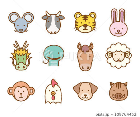 かわいい干支アイコンセット|動物の顔イラスト素材
