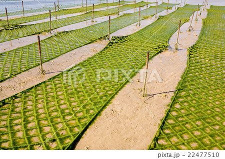 あおさ海苔の養殖 アオサノリの網と海 海苔畑の風景 伊勢志摩の風景