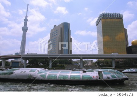 東京スカイツリーとアサヒビール本社と水上バス・ヒミコ