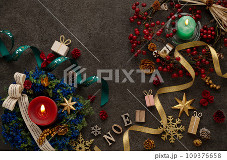 クリスマスリースとキャンドル イルミネーション