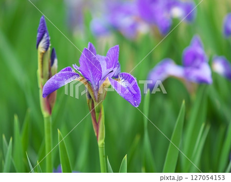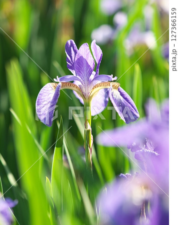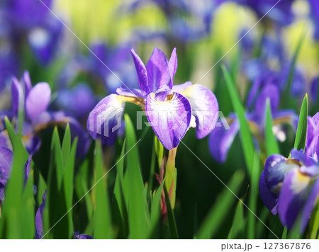 陽射しの中で咲き誇るアヤメ