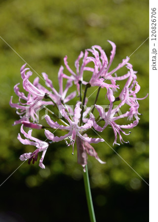 開花したピンク色のヒメヒガンバナの花(ネリネ/ダイヤモンドリリー)