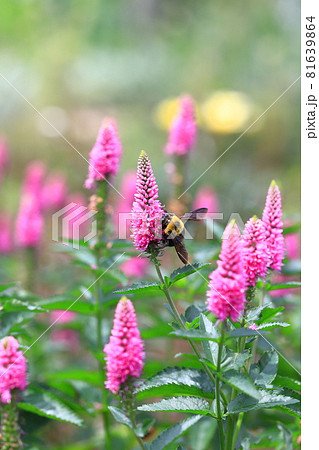ピンク色のベロニカ(ルリトラノオ)とハチ