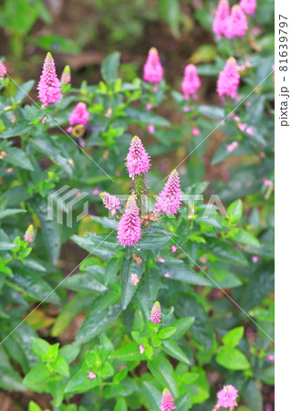 ピンクと紫色のベロニカ(ルリトラノオ)の花