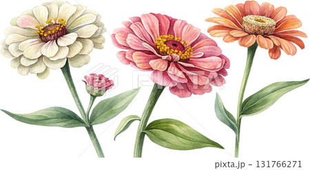 Watercolor Zinnia Flowers