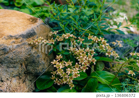 Saxifraga, the stone breaker flowers in the garden.