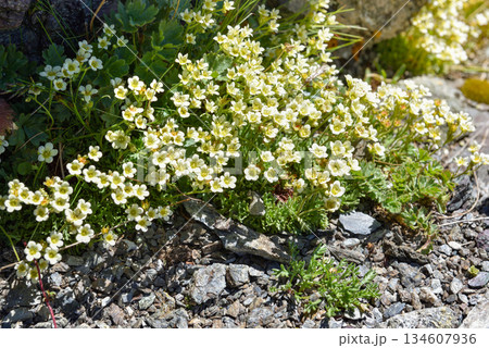 Saxifrage flowers on a mountain slope (Saxifraga nelsoniana)