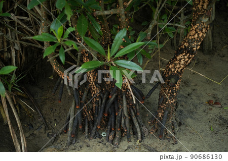 沖縄県名護市大浦のマングローブ遊歩道から写したヒルギの木
