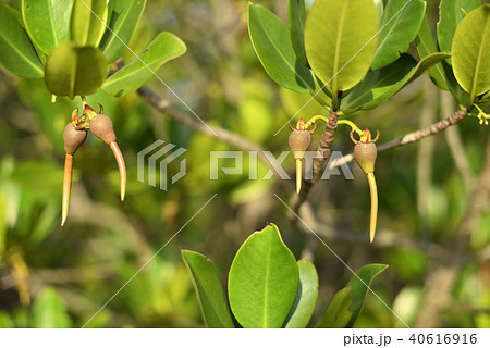ヤエヤマヒルギ 胎生種子 種 マングローブ 葉 クローズアップ