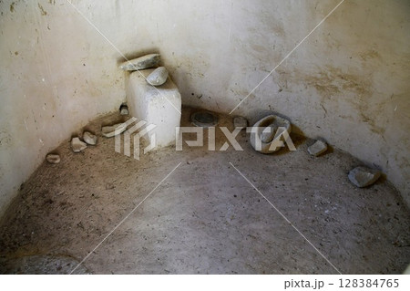 キプロス、ヒロキティア、ヒロキティア遺跡、紀元前7000年頃の住居跡、復元住居内部