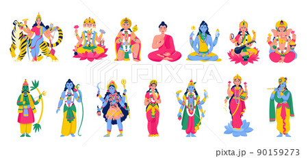 Flat Hindu Gods and Mythological Figures Composition