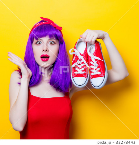 girl with purple color hair and sneakers