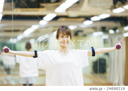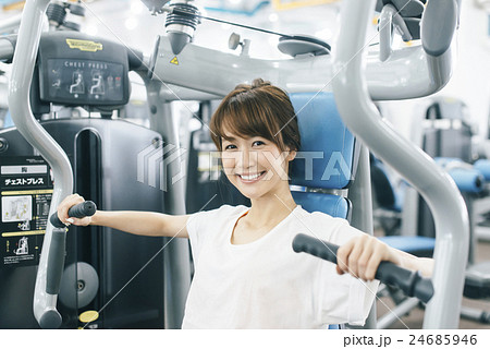 フィットネスジムで運動する女性