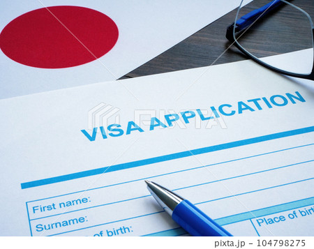 APPLY FOR VISA text and flag of Japan on the buttons on the computer keyboard. Conceptual 3D