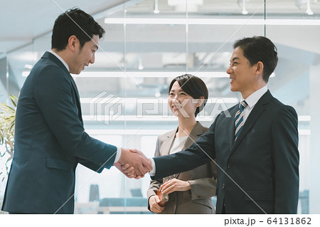 企業のオフィス・会議室で握手をして挨拶・自己紹介・契約を結ぶビジネスマン