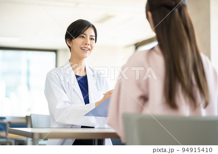 女医、女性、医者、医師、面談、会社員、ストレス、産業医面談、ストレスチェック、カウンセリング、医療