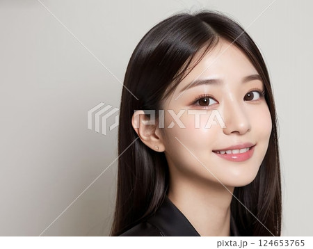 白背景で笑顔のかわいいアジア人少女のポートレート