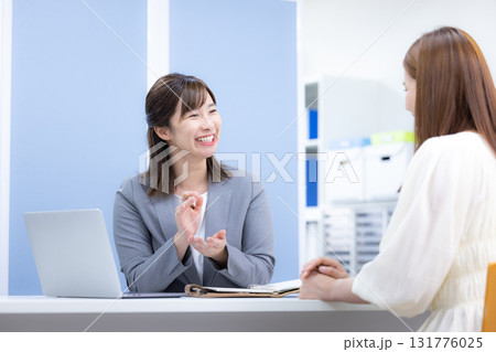 ビジネス 接客をする窓口の女性