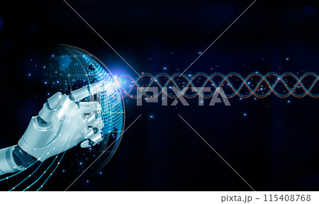 Hand robot touching global network connection and data exchanges on internet network and digital software development, social networking and communication. Algorithm and data science.