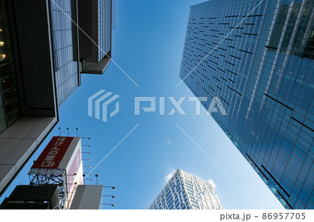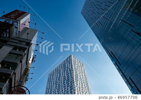 渋谷の高層ビルと青空