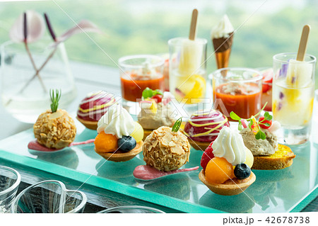 食べ物 パーティー ビュッフェ 料理イメージ 魚 肉 ビュッフェイメージ 和洋中折衷料理イメージ