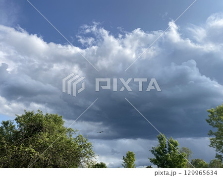A Dramatic Cloudscape Set Above Lush Greenery, Filling the View with Beauty and Depth