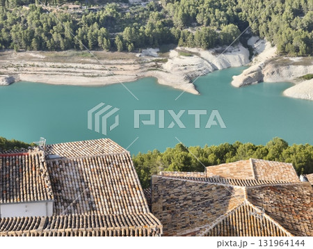 Experience the Stunning View of the Turquoise Reservoir Surrounded by Lush Green Forests