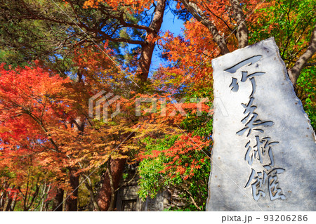 秋の山梨県 久保田一竹美術館正門の紅葉