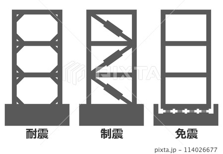 地震に強い免震や耐震補強した頑丈なビルのイラスト
