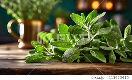 Sage leaf medicine herbal ingredient. Health aromatherapy herb.