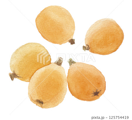 びわの手描きイラスト(筆書き水彩墨絵風)