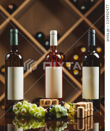 Realistic Empty Brown and Green Glass Wine Bottles Mockup for Branding, Label Design, Product Presentation, and Advertising