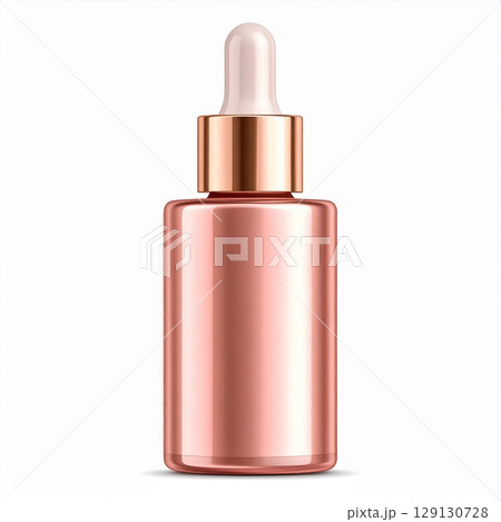 Rose Gold Cosmetic Serum Bottle with Dropper Isolated on White Background