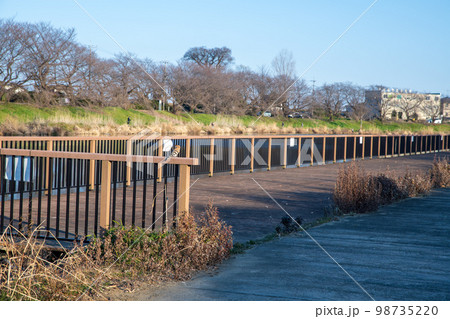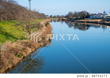 青空 冬景色 びん沼川の風景 さいたま市側からの眺め