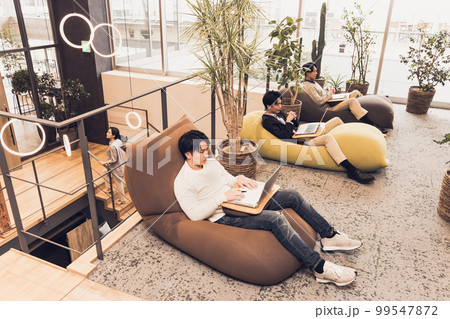 ビーズクッション テーブルクッション オシャレな職場で働く男性