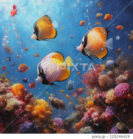 Underwater Coral Reef Ecosystem with Colorful Fish and Sunlight Rays