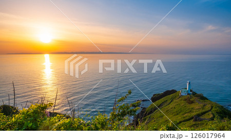 北海道厚岸郡 霧で有名な夏の霧多布岬と湯沸岬灯台