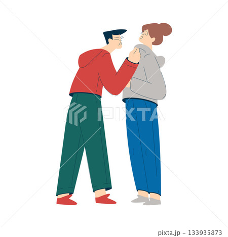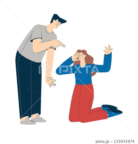 Domestic Abuse and Violence with Man Character Hitting Woman Vector Illustration