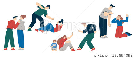 Domestic Abuse and Violence with Man Character Hitting Woman Vector Set