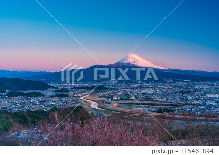 (静岡県)静岡市の街並み・街灯りの向こうに富士山