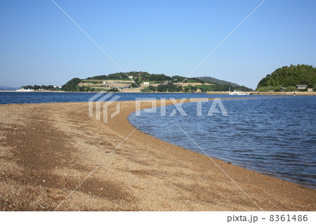 岡山県瀬戸内市牛窓にある黒島ヴィーナスロードで繋がる黒島と中ノ小島と端ノ小島